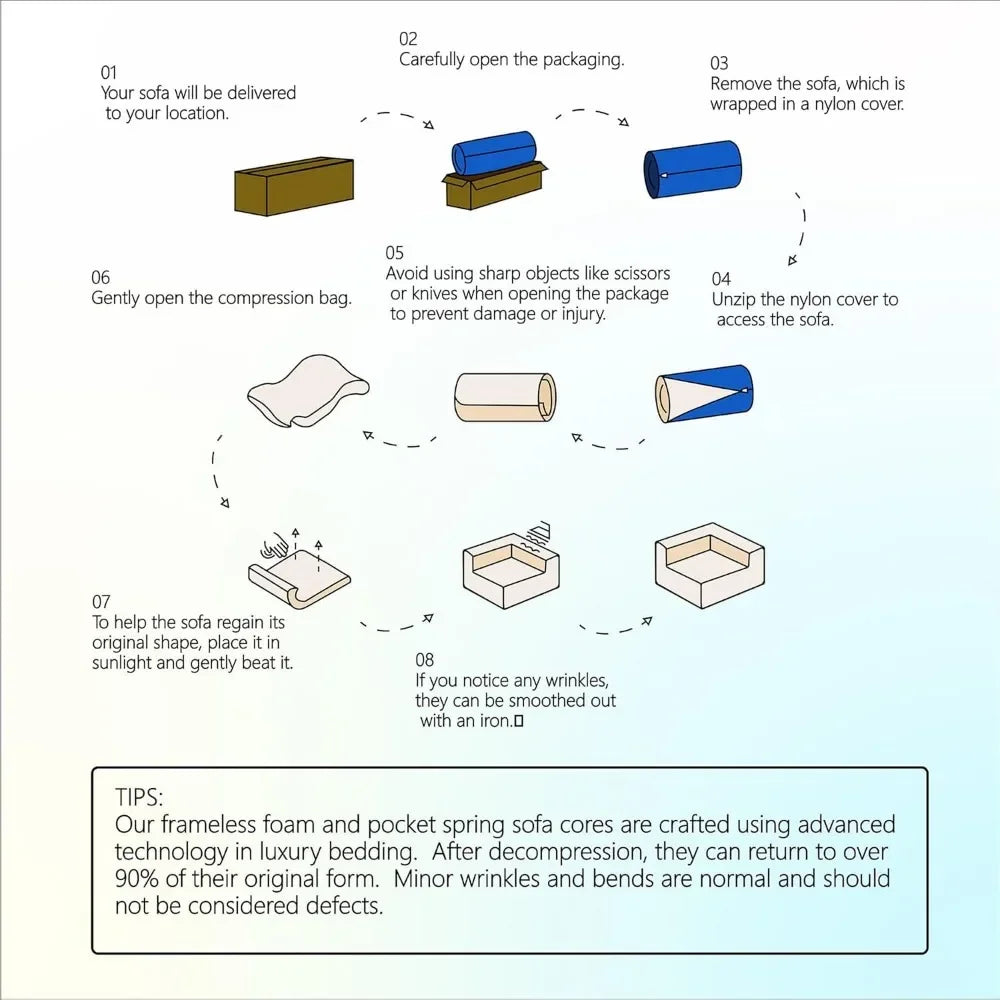 - 【Assembly-Free Convenience】Say goodbye to the tedious process of furniture assembly. Unbox all packages, give each part a gentle pat to restore its plush appeal, and within a maximum of 72 hours, watch as your sherpa L shaped sofa effortlessly transforms into the picture-perfect centerpiece you envisioned. Enjoy the convenience of assembly-free bliss.