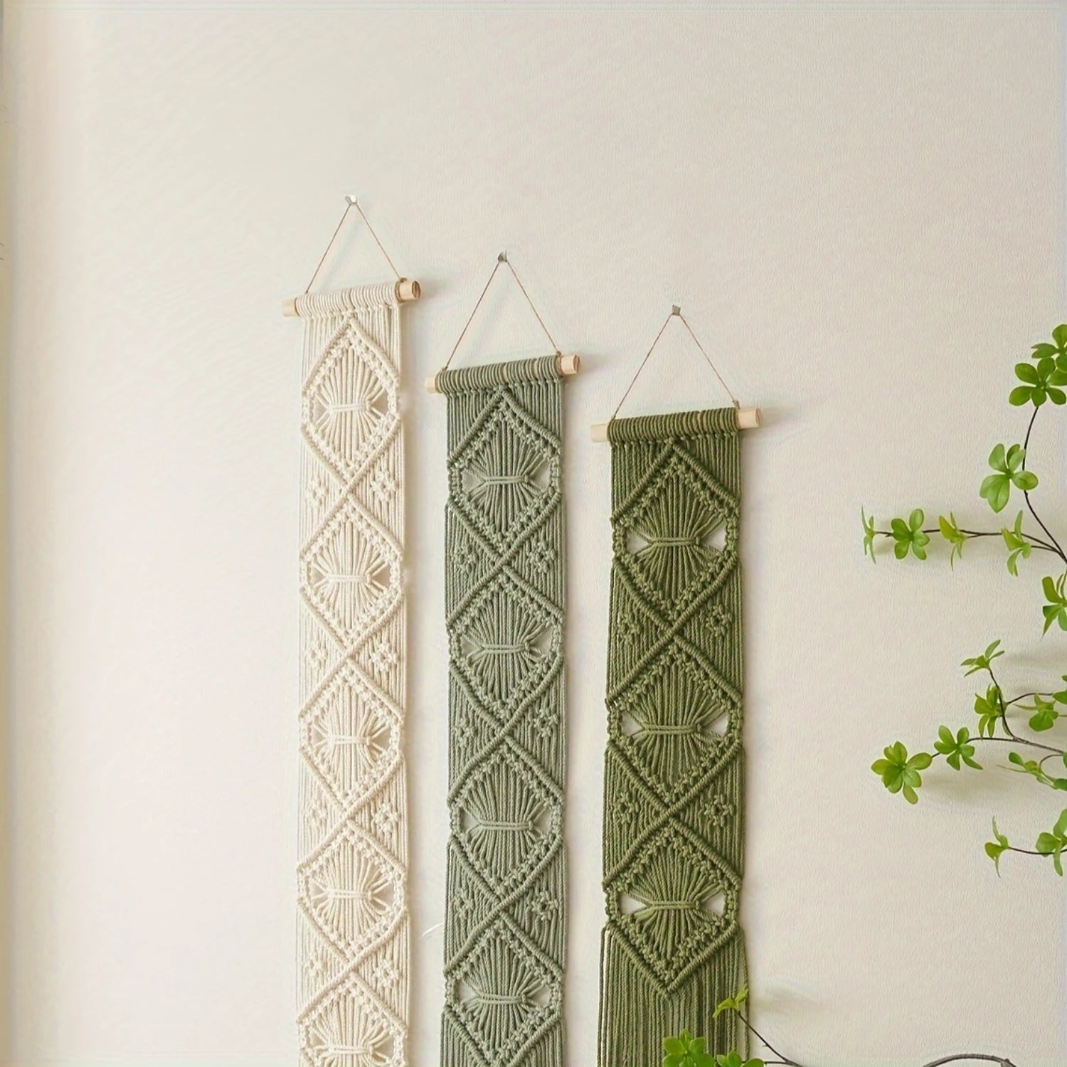 1. Add a touch of bohemian style to your living space with our hand-woven, shaped long tapestry. Perfect for bedroom decor or hanging on your wall as a unique piece of art.