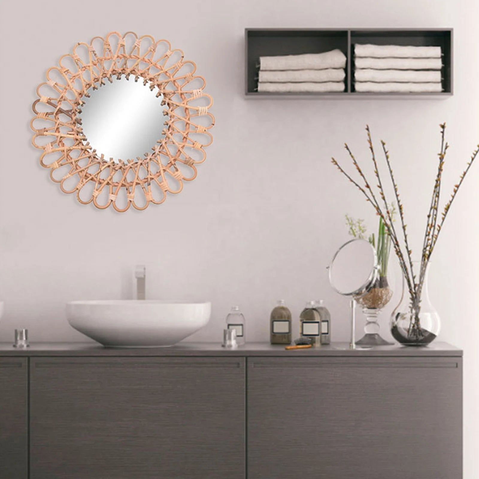 Rattan mirror (Natural material) for wall gives you clear and natural imaging, and it is not easy to oxidize, not easy to rust, and it features rattan design, which is odorless, strong and not easy to damage.