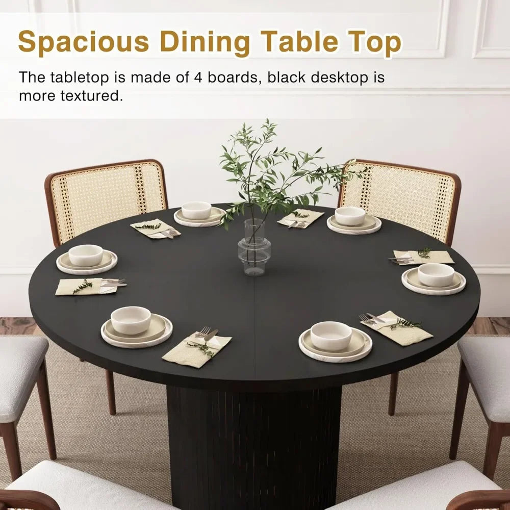 - VERSATILE DESIGN: This round dining table featuring a stylish T-shaped design and delicate bottom line, has a simple yet stylish design that fits well in both kitchens and living rooms for casual meals or entertaining guests. The fluted pedestal is round metal leg base surrounded by wooden strips, ensuring both delicacy and load-bearing ability.