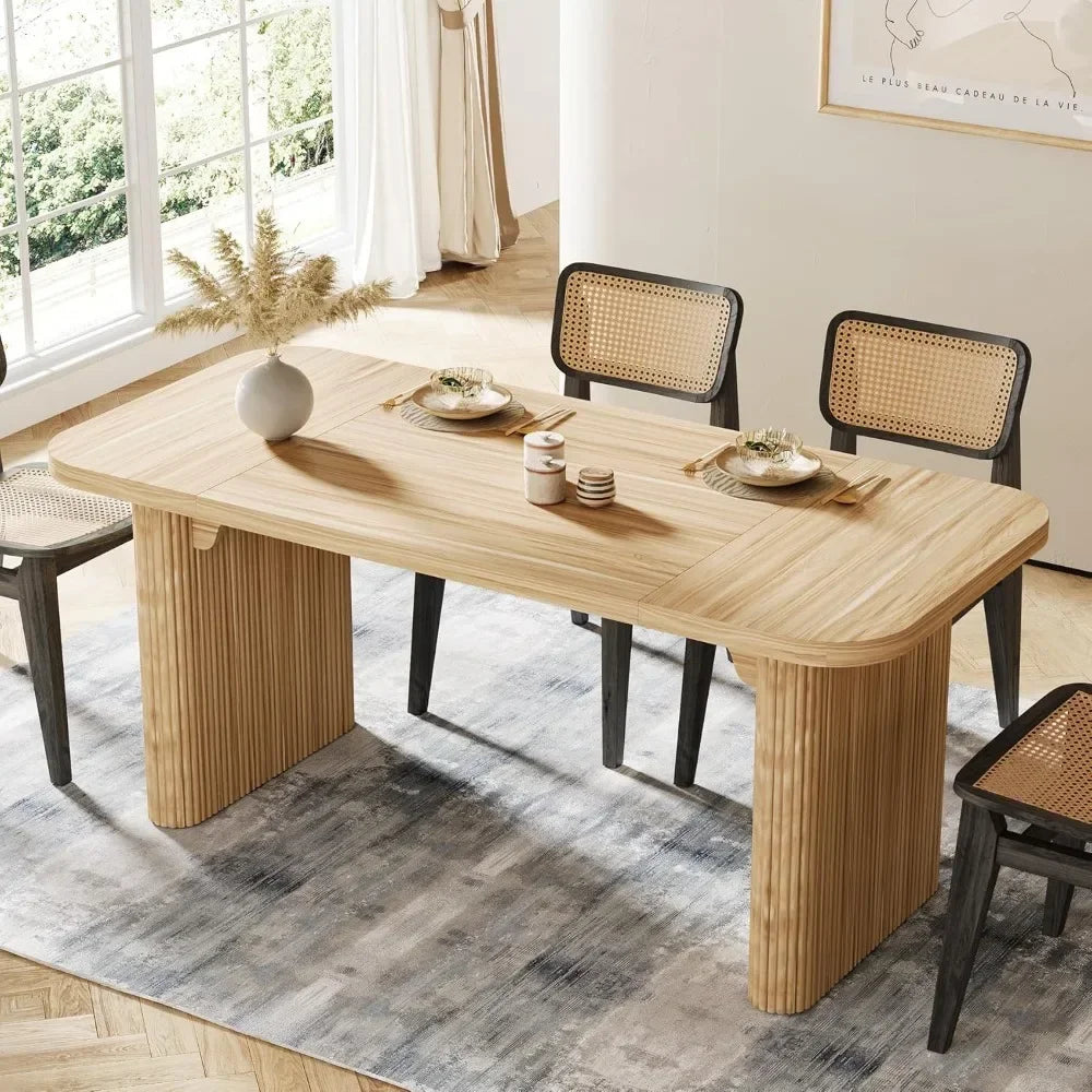 - Thickened MDF Tabletop: Crafted with a high-quality and thickened MDF tabletop, the dining table ensures durability and resilience, handling daily use while retaining its surface quality and color