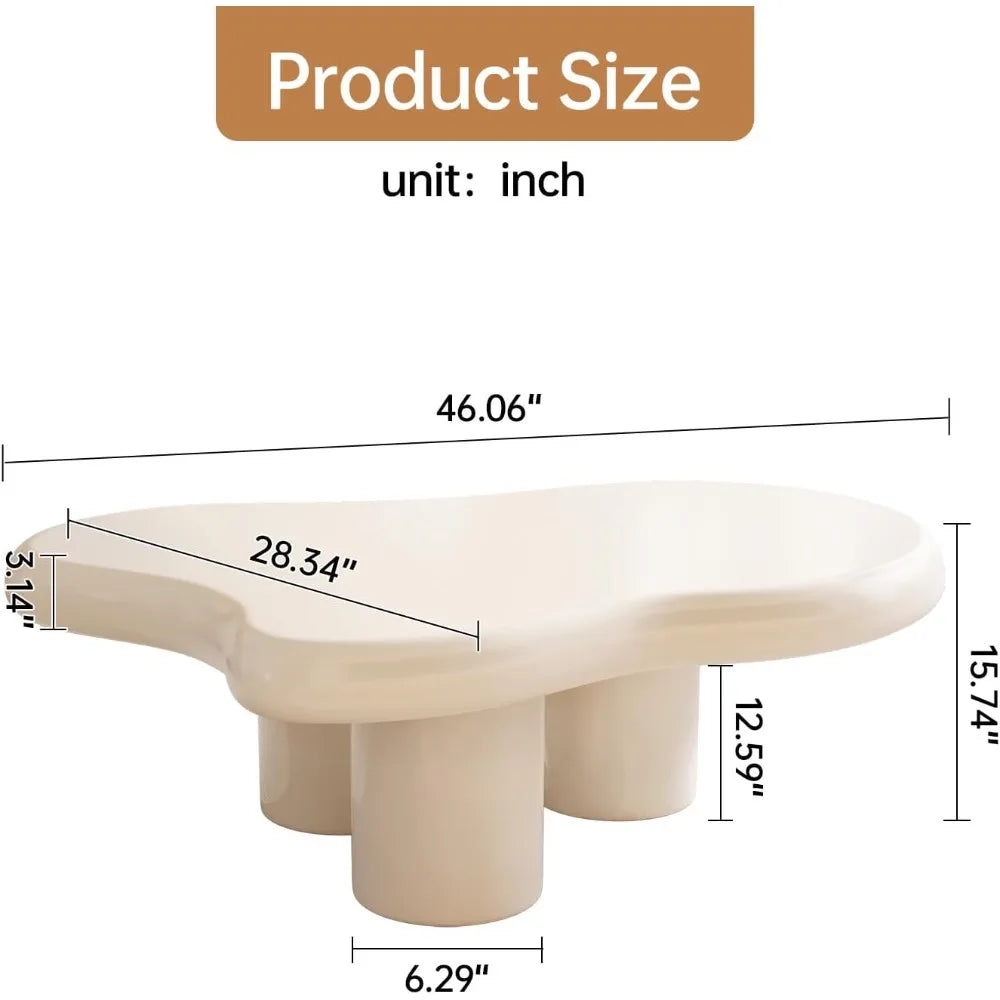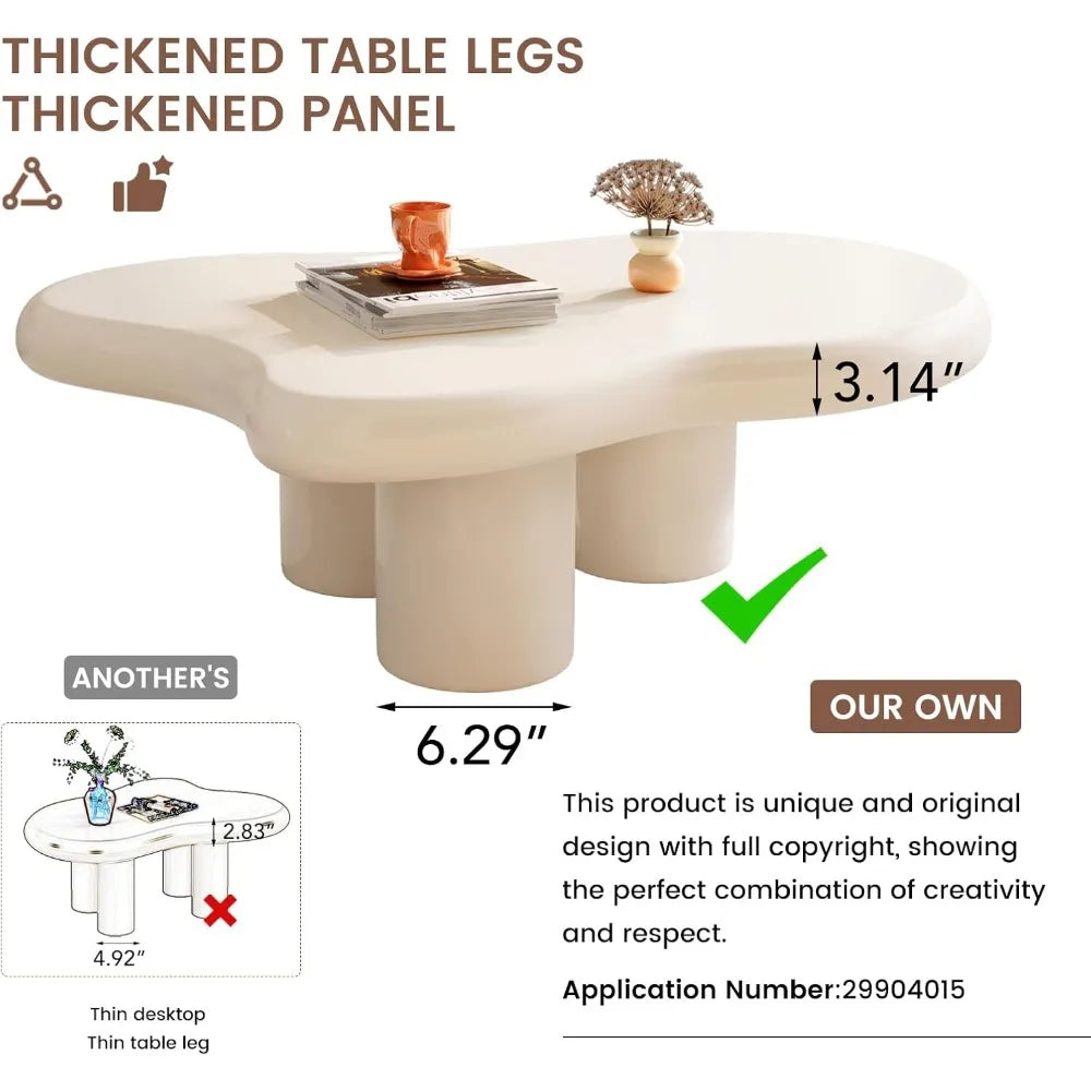 Coffee Table Cloud,Unique Wavy Design, Irregular Shape Living Room Coffee Table, Modern Aesthetic Cute Funky Indoor Center Table