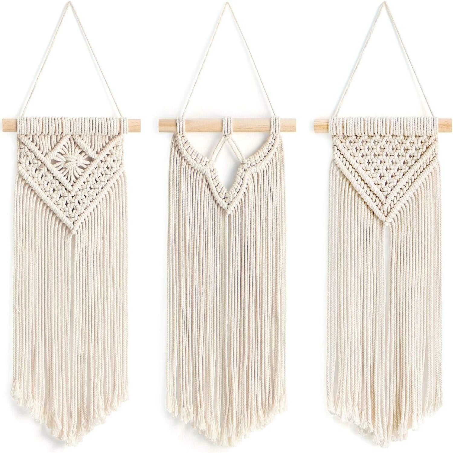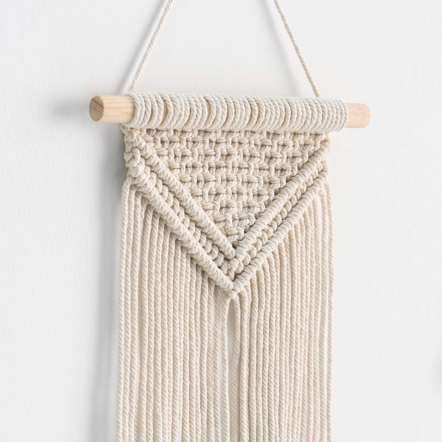 1. Elevate your living space with this Small Macrame Wall Hanging Pack, featuring intricate weaving and a chic geometric design. Handmade with sustainable materials, this unique home decor piece is perfect for adding a touch of bohemian style to your bedroom, living room, or apartment.
